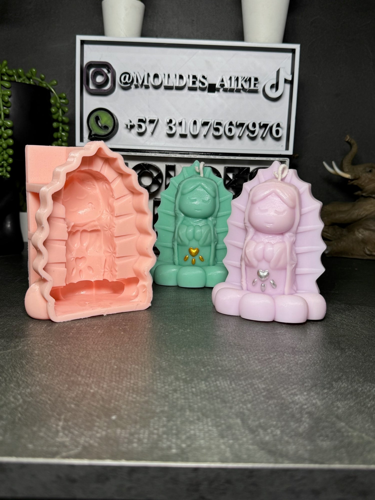 Moldes de figuras religiosas en silicona para velas devocionales y decorativas. Detalles...