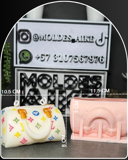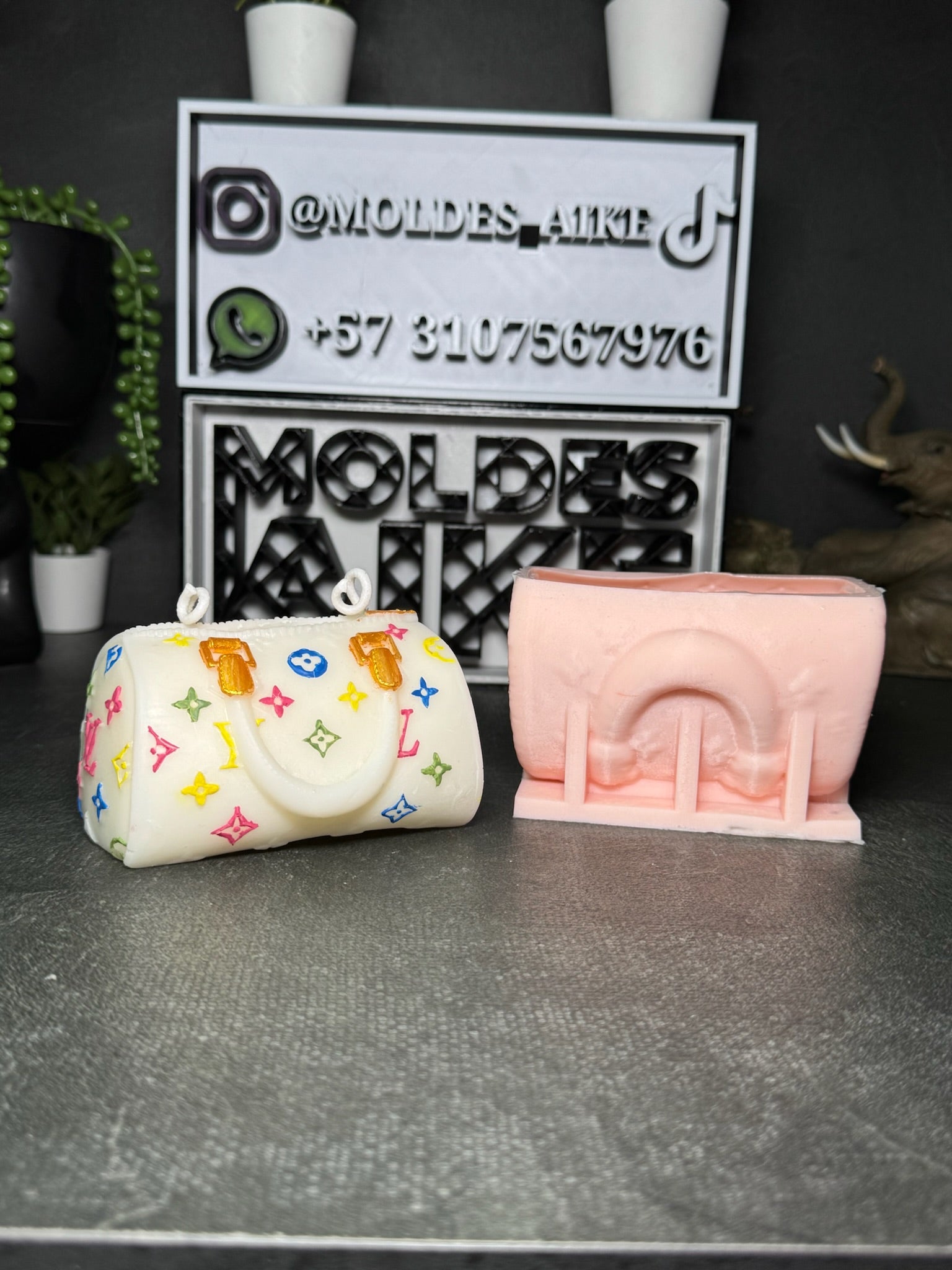 Molde en silicona con diseño inspirado en el icónico bolso Louis Vuitton, ideal para crear velas elegantes, modernas y con un toque fashion para decorar, regalar o sorprender a amantes de la moda.