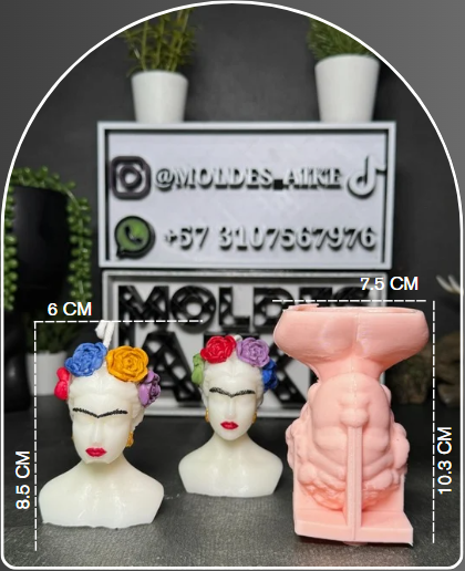 Molde en silicona con diseño icónico de Frida Kahlo, perfecto para crear velas artísticas y únicas, ideales para coleccionistas, amantes del arte o para regalar algo verdaderamente especial.