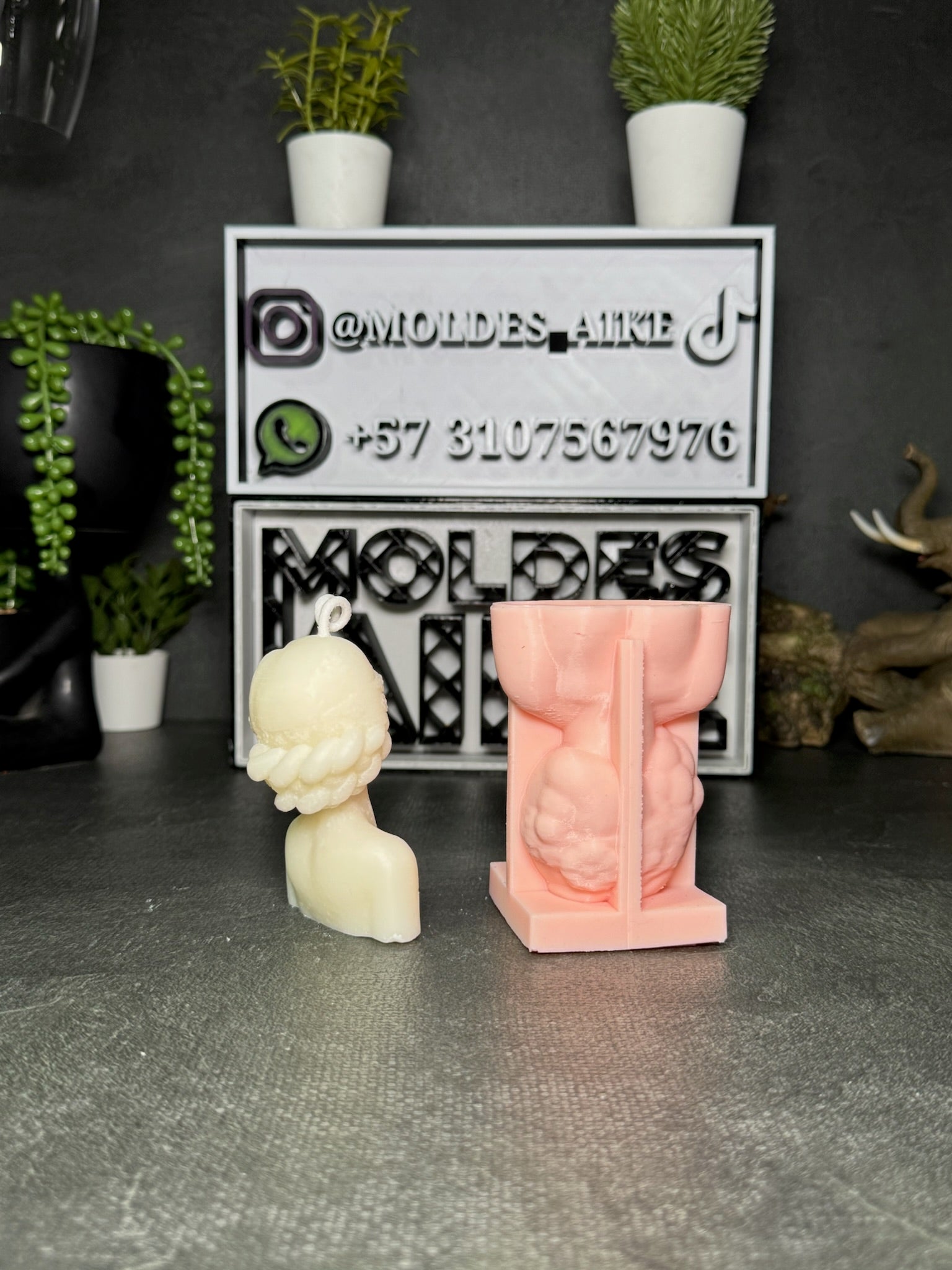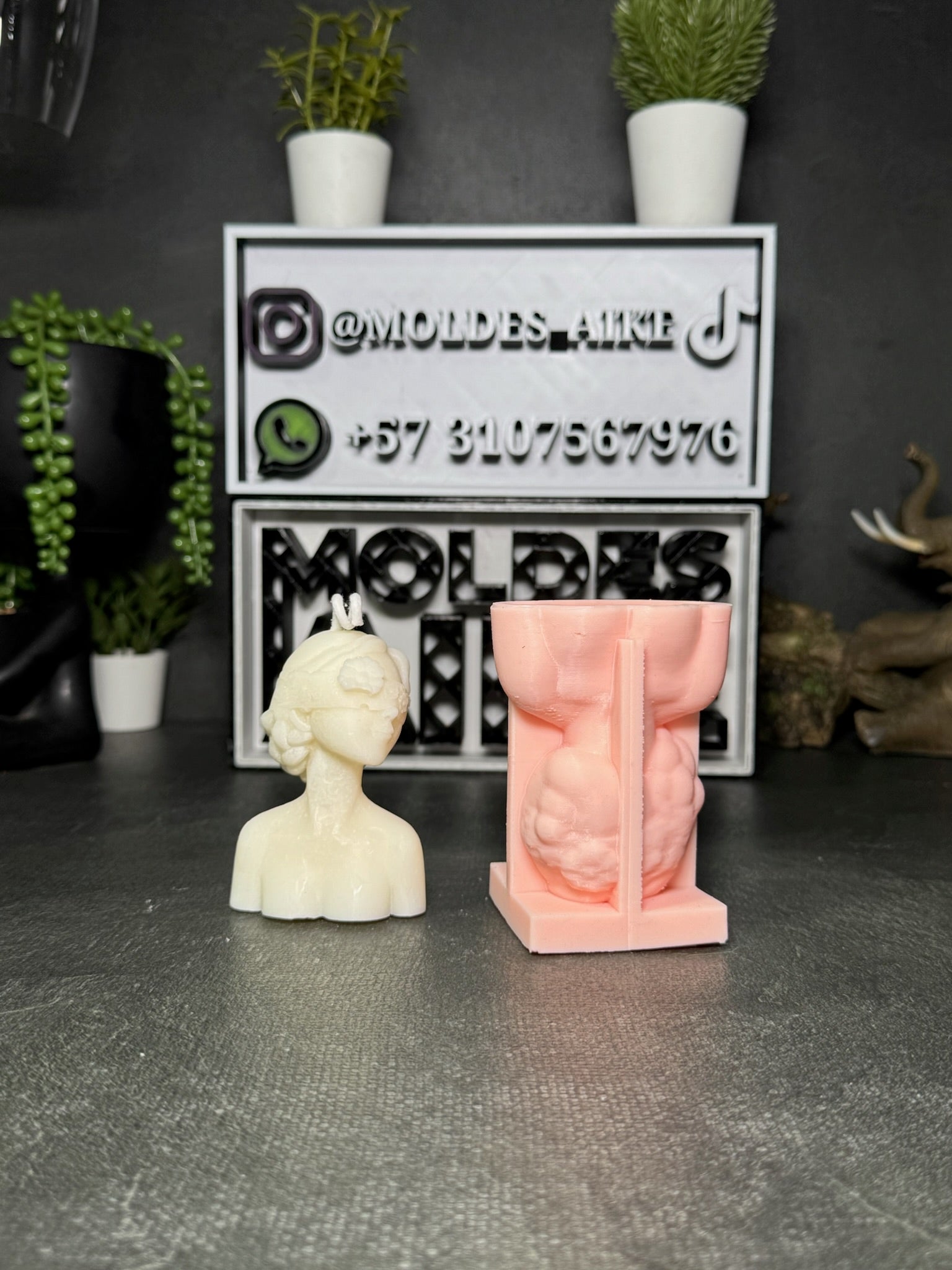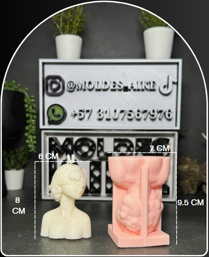 Molde en silicona con diseño artístico de mujer con antifaz de flores, ideal para crear velas sofisticadas, llenas de encanto y estilo, perfectas para decoración, regalos únicos o eventos especiales.