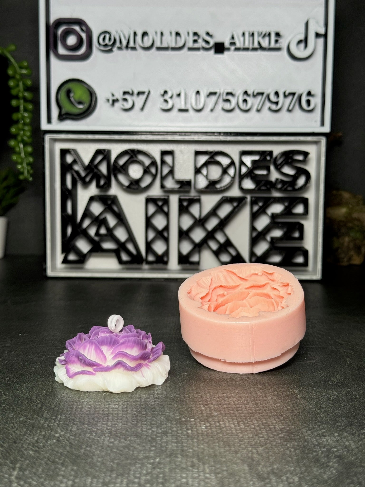 Molde en silicona con diseño detallado de flor peonía, perfecto para crear velas elegantes y sofisticadas, ideales para bodas, aniversarios o decoración de espacios especiales.
