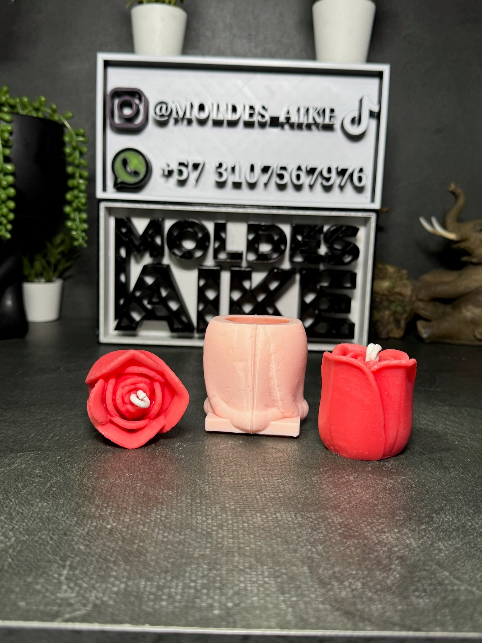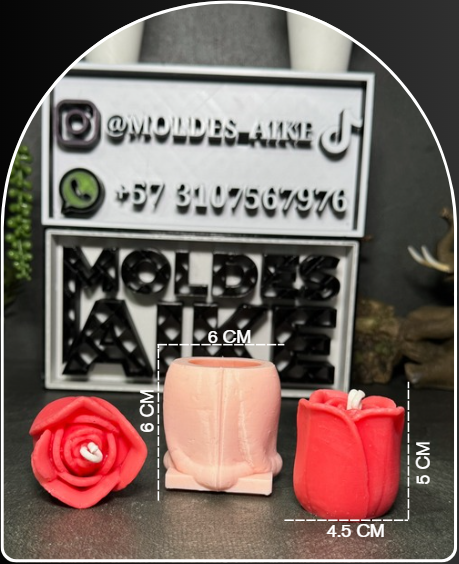 Molde en silicona con diseño elegante de rosa cerrada, perfecto para crear velas sofisticadas, detalles románticos o decoraciones para bodas, aniversarios y eventos especiales.