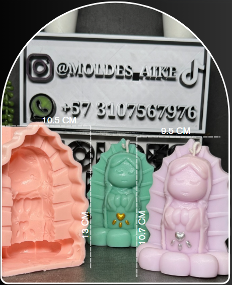 Molde en silicona con diseño detallado de la Virgen de Guadalupe, ideal para crear velas devocionales, recuerdos de bautizos, confirmaciones o celebraciones del 12 de diciembre.