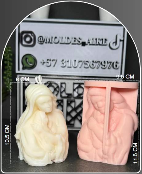 Molde en silicona con diseño tierno de la Virgen abrazando a un bebé, perfecto para crear velas emotivas para bautizos, nacimientos, primeras comuniones o regalos especiales llenos de significado.